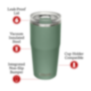Camelbak Thrive Tumbler er en vakuumisoleret termokop, der er designet til at holde dine drikke varme eller kolde i længere tid. Den er fremstillet af højkvalitets rustfrit stål og har en mat finish, der giver den et stilfuldt udseende.Thrive Tumbler bruger en dobbeltvægskonstruktion og vakuumisolering for at bevare temperaturen på din drik. Den kan holde dine varme drikke varme i op til 8 timer og kolde drikke kolde i op til 20 timer.Med et spildsikkert låg skal du ikke bekymre dig om at spilde, når du er på farten. Låget er designet til at forhindre lækager.Den passer i de fleste kopholdere og kan nemt tages med i bilen. Det gummierede lag i bunden sørger for, at den står stabilt og sikkert på de fleste overflader.Uanset om du bruger den til daglig pendling, på arbejde eller til udendørs eventyr, giver Camelbak Thrive Tumbler dig mulighed for at nyde din drik ved den ønskede temperatur.